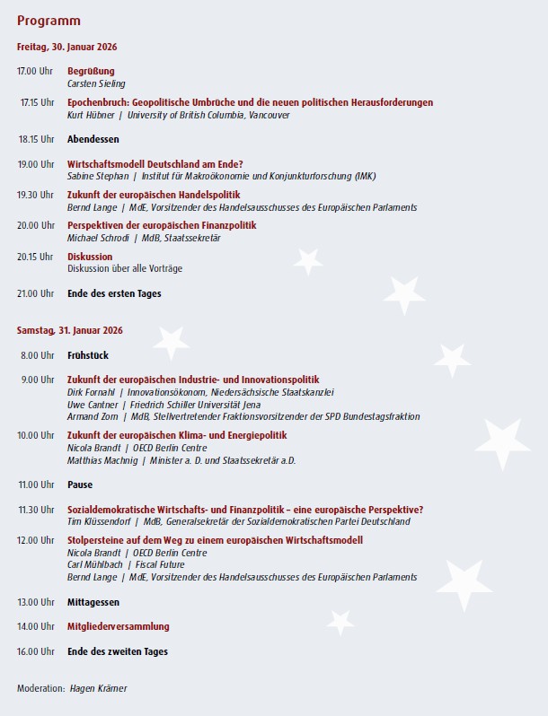 Der EU-Binnenmarkt ist nach wie vor der größte Binnenmarkt der Welt. Für die Weiterentwicklung dieses gemeinsamen Marktes ist zugleich die Herausbildung eines eigenständigen europäischen Wirtschaftsmodells notwendig. Auf unserer Tagung möchten wir die zentralen Eckpfeiler eines solchen Modells vorstellen, seine Umsetzungschancen analysieren und bestehende Herausforderungen diskutieren. Dabei stehen insbesondere folgende Fragen im Mittelpunkt: